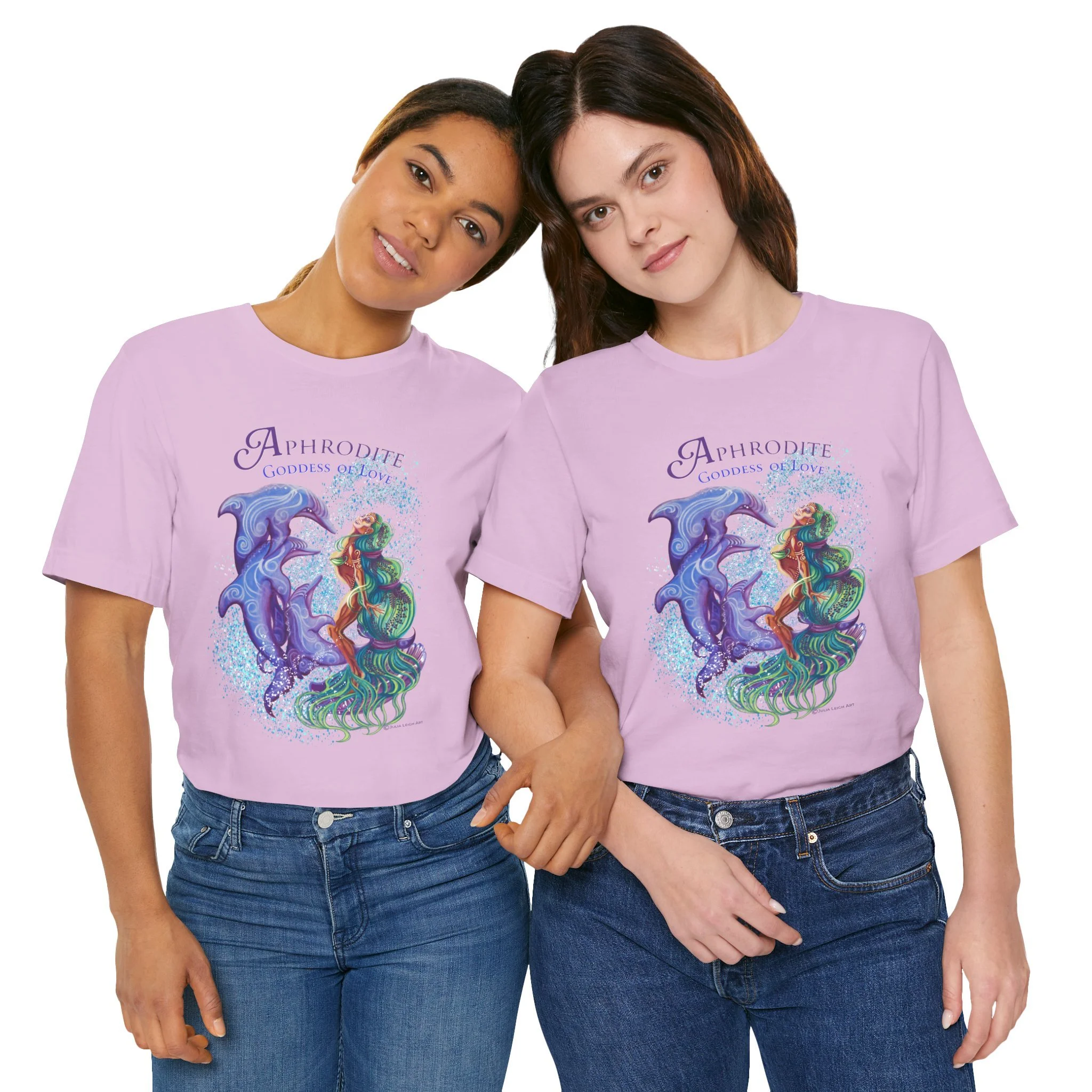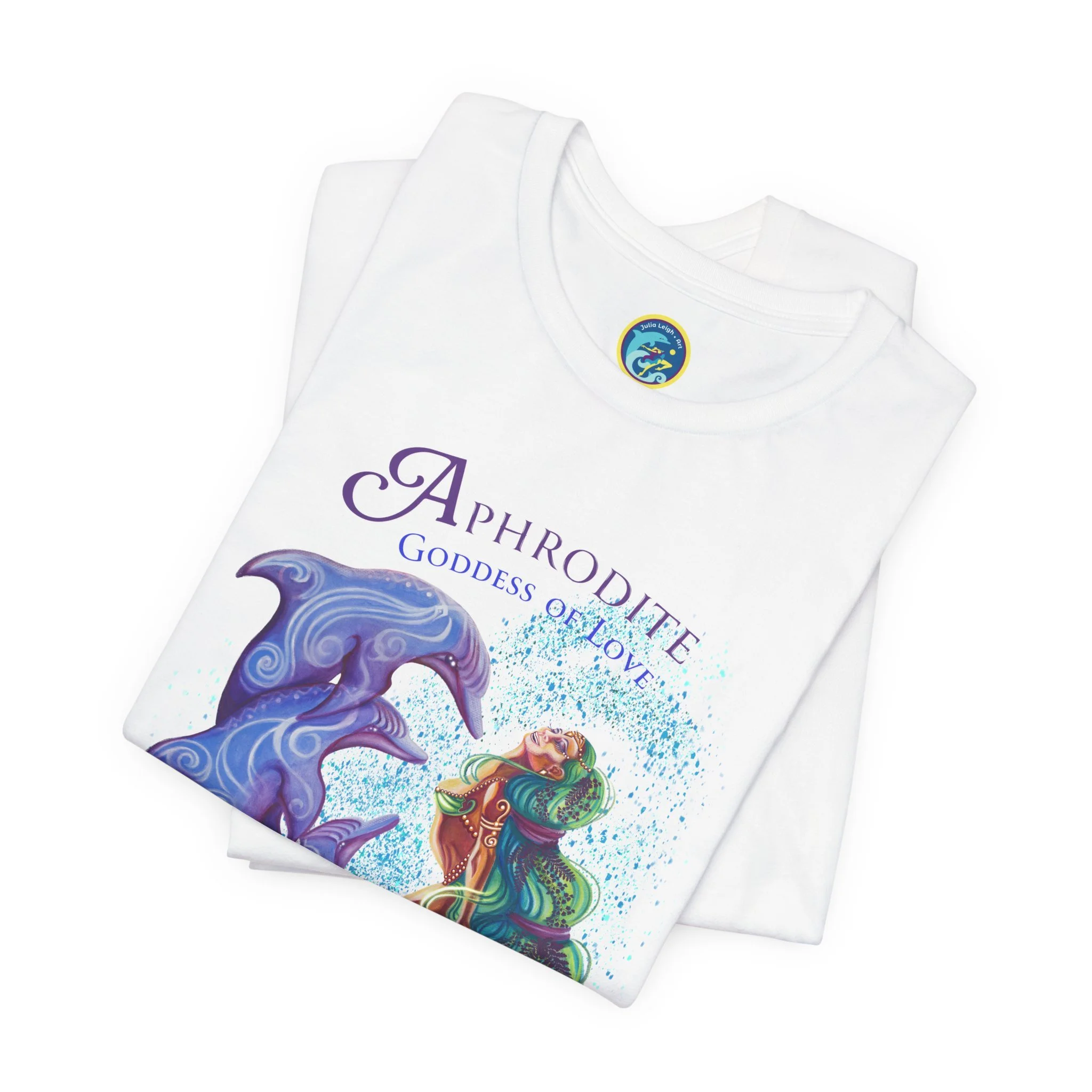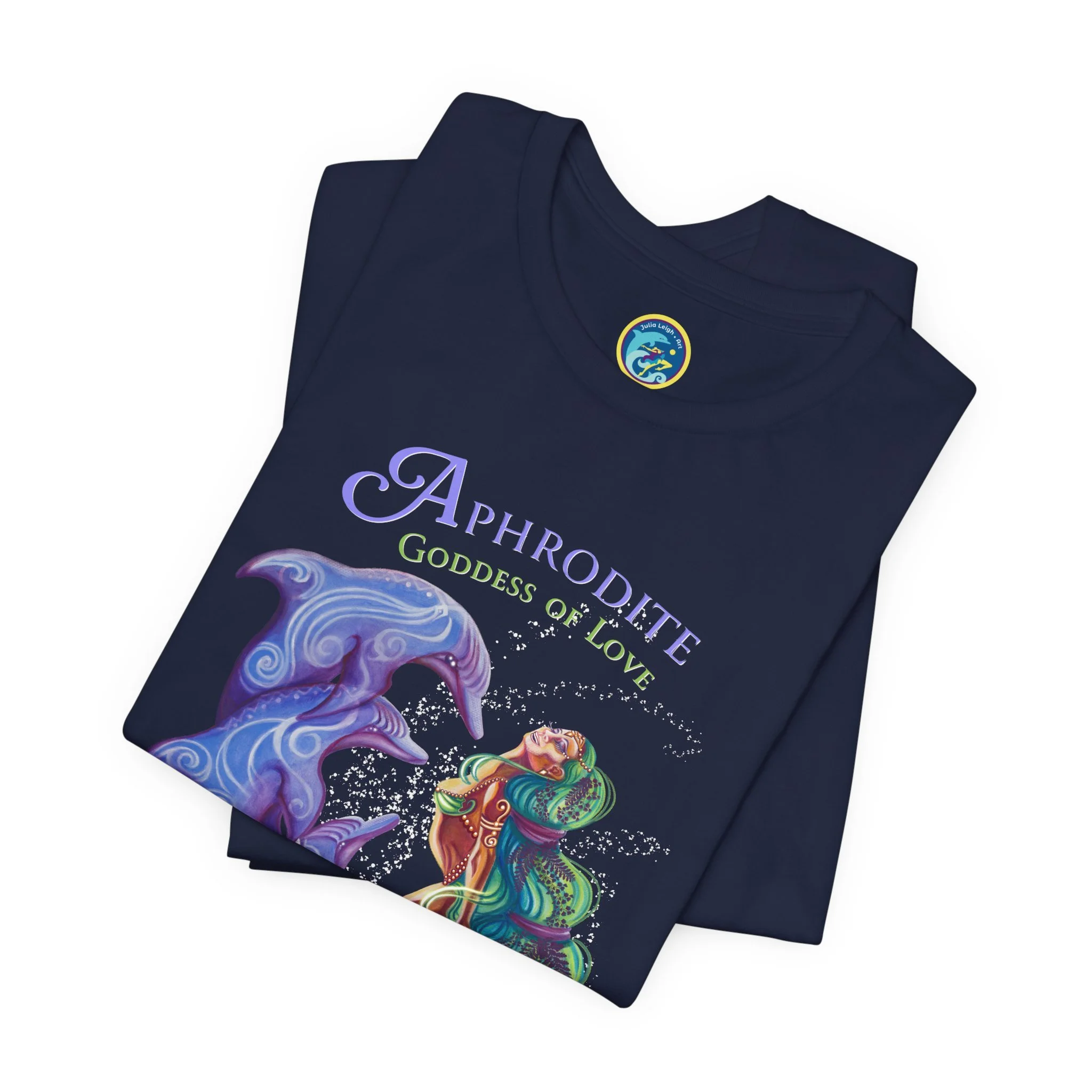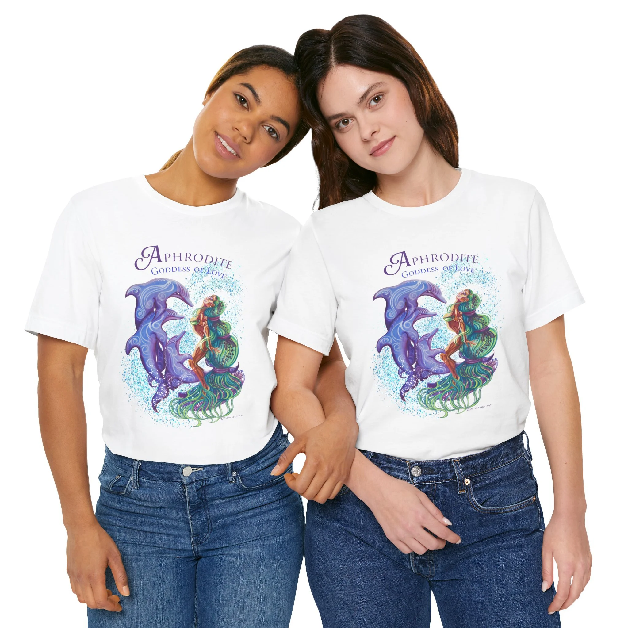This Goddess Aphrodite Unisex Jersey Short Sleeve Tee features the Ancient Greek Goddess of Love, Beauty, Pleasure & Passion - Aphrodite is one of the 12 Olympian Deities revered for millenia as the embodiment of Sensuality & Female Empowerment....Aphrodite & her Dolphins are a symbol of the Creative Forces of Life!