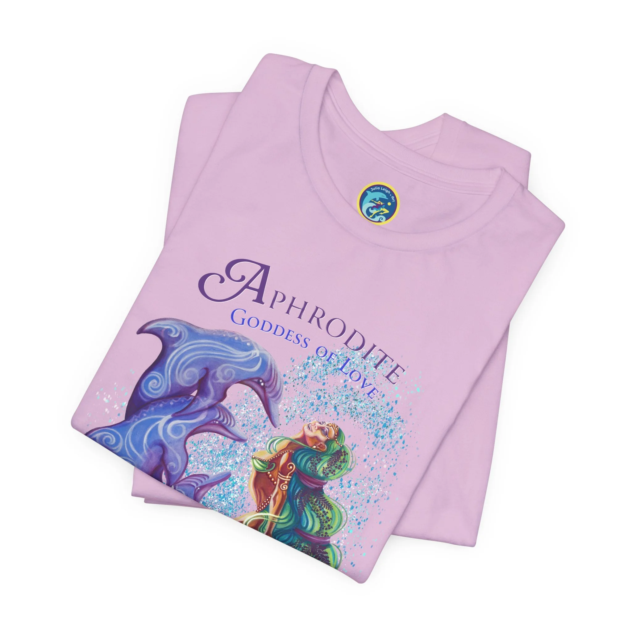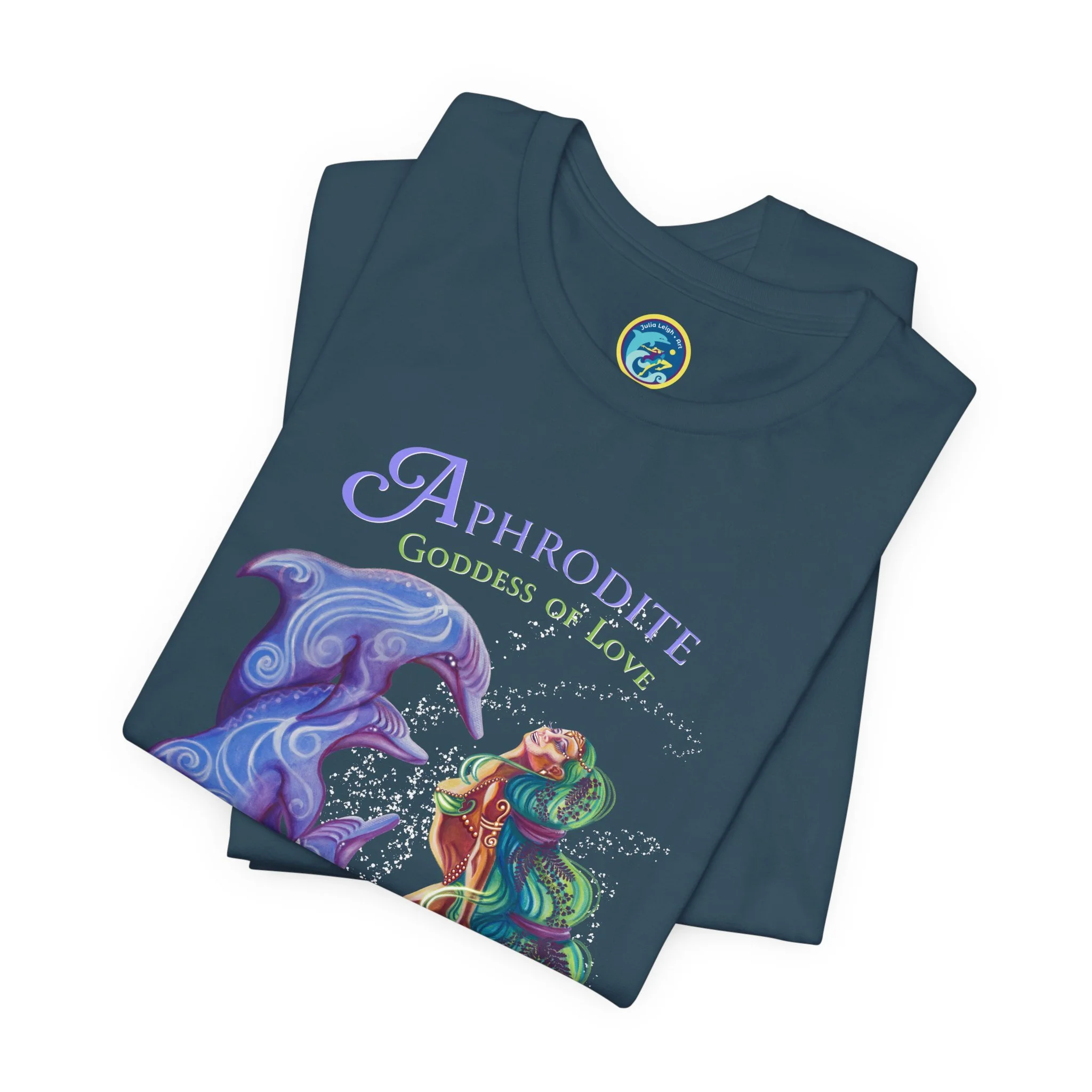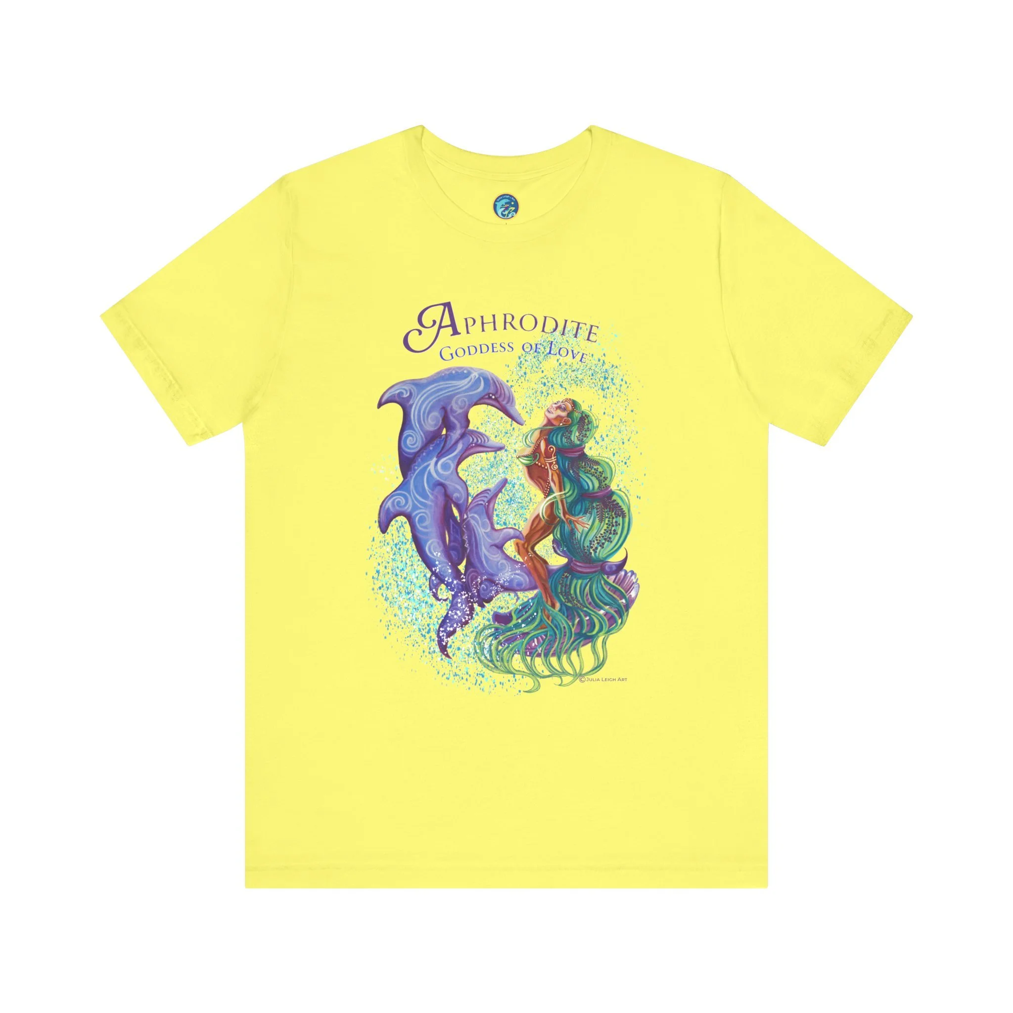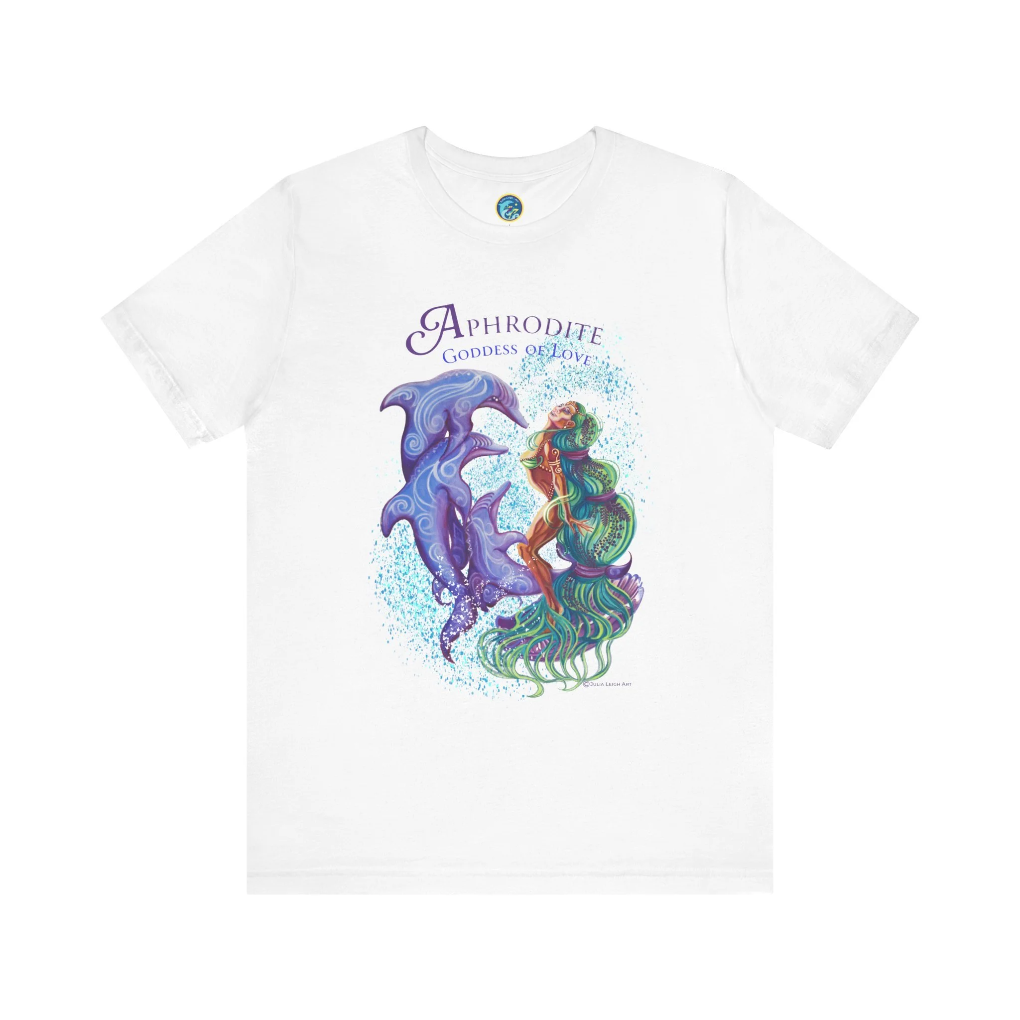 This Goddess Aphrodite Unisex Jersey Short Sleeve Tee features the Ancient Greek Goddess of Love, Beauty, Pleasure & Passion - Aphrodite is one of the 12 Olympian Deities revered for millenia as the embodiment of Sensuality & Female Empowerment....Aphrodite & her Dolphins are a symbol of the Creative Forces of Life!