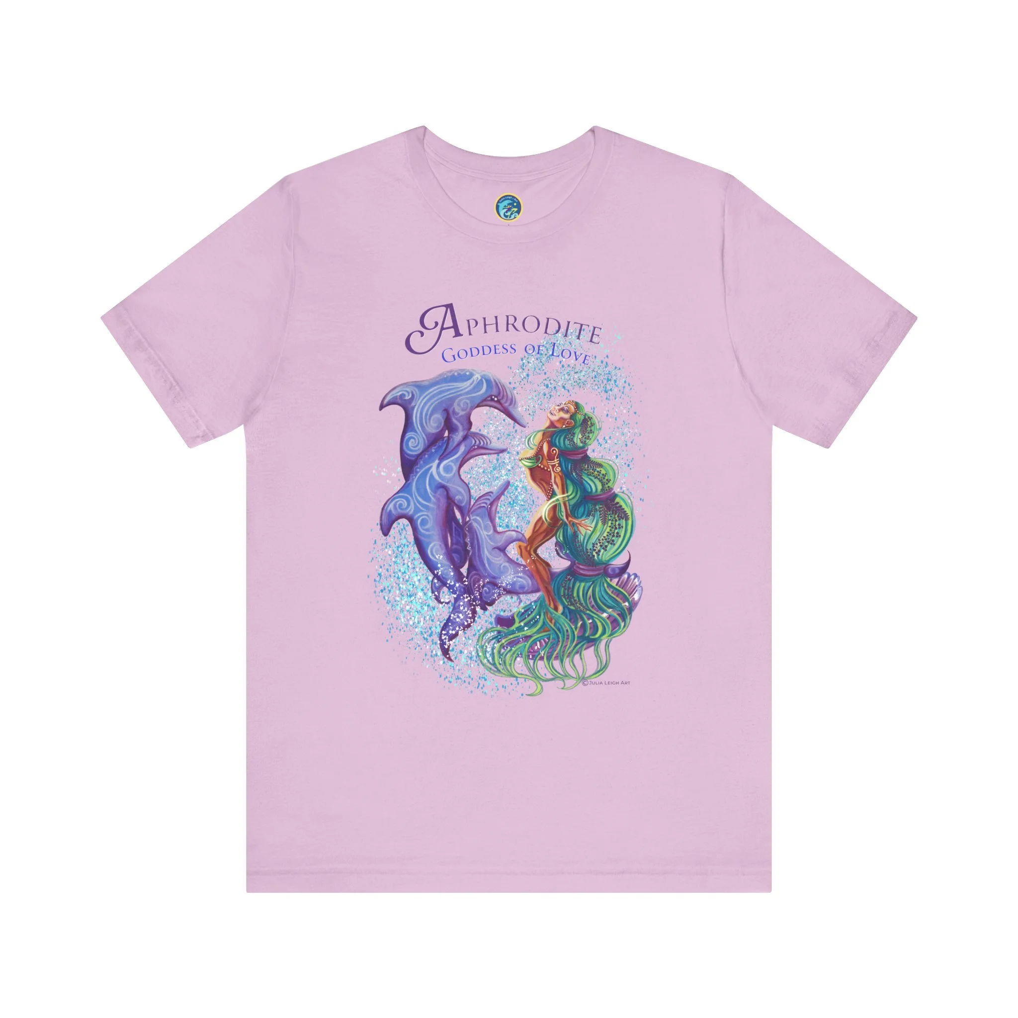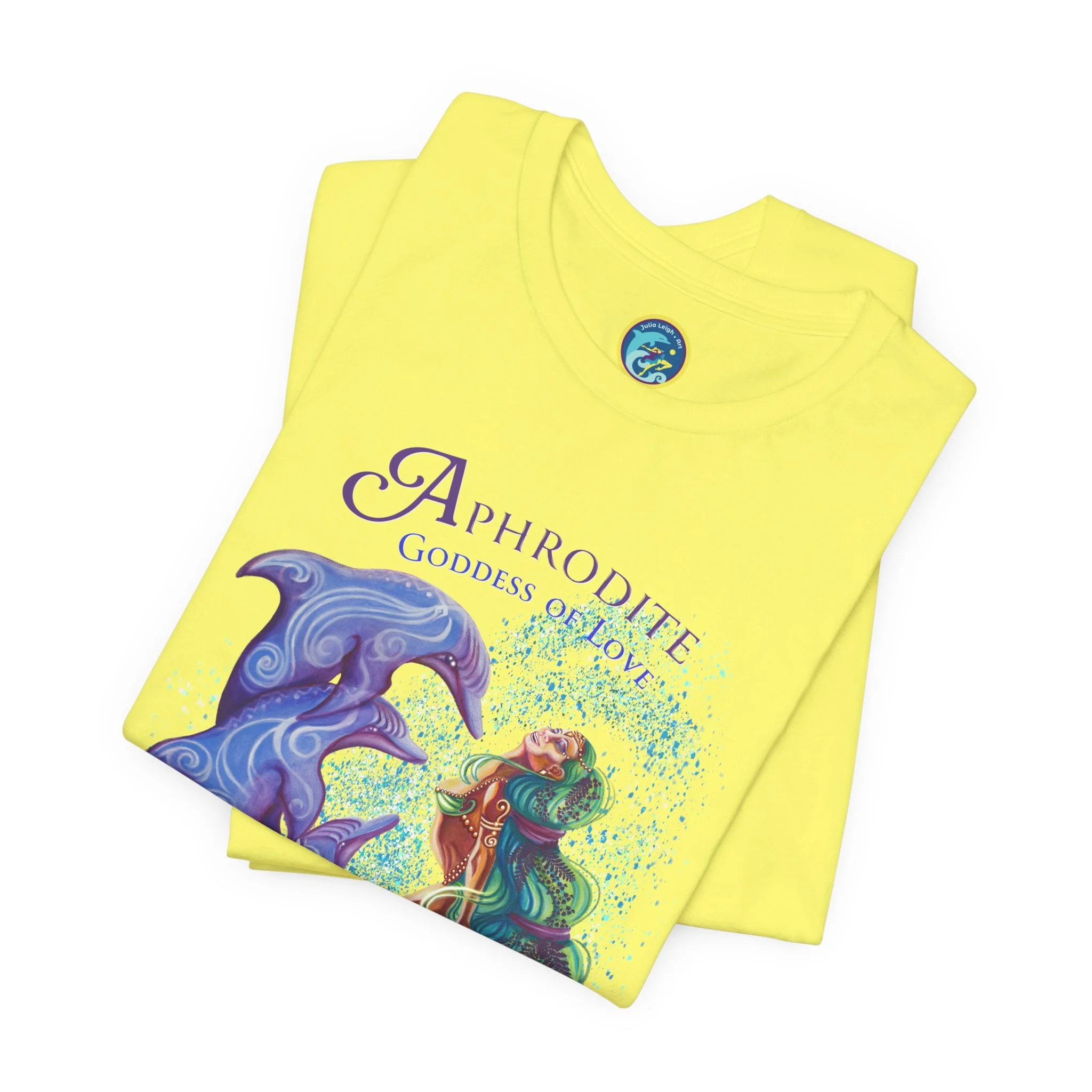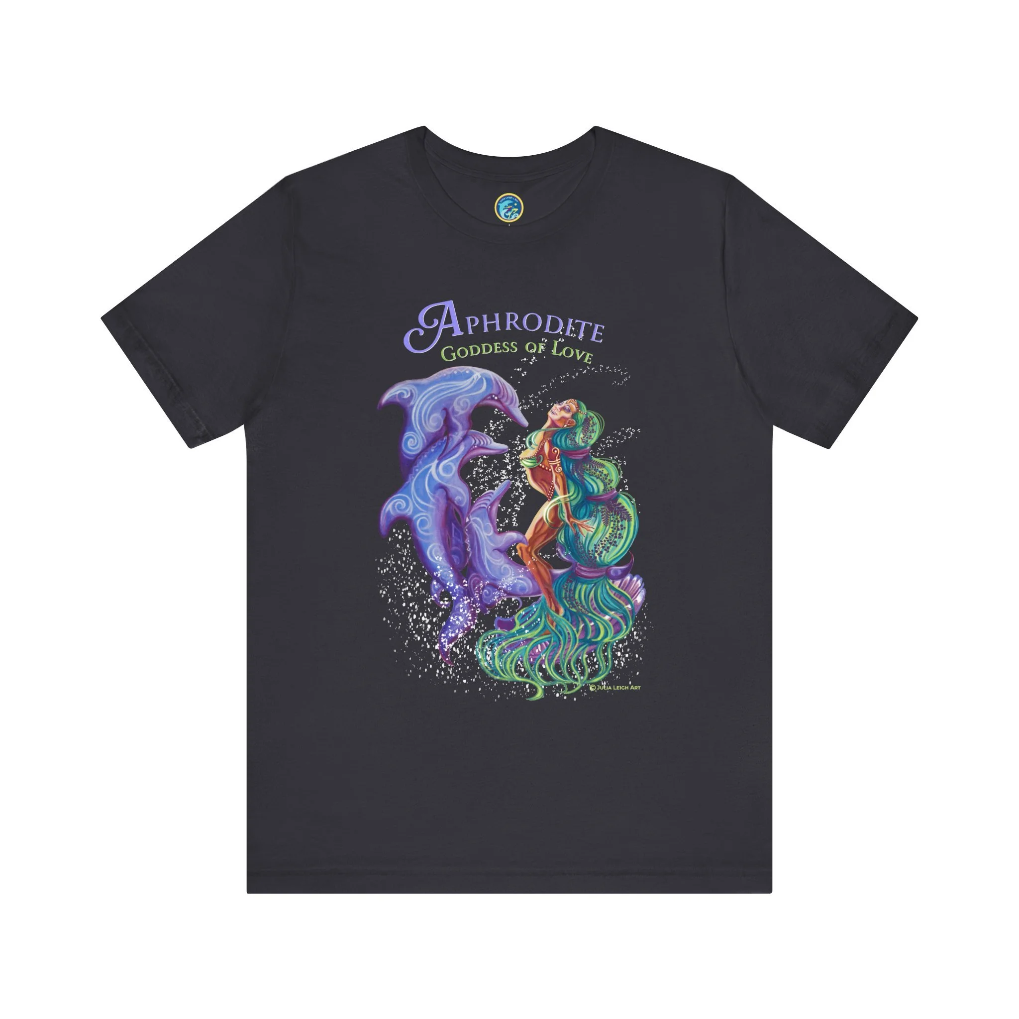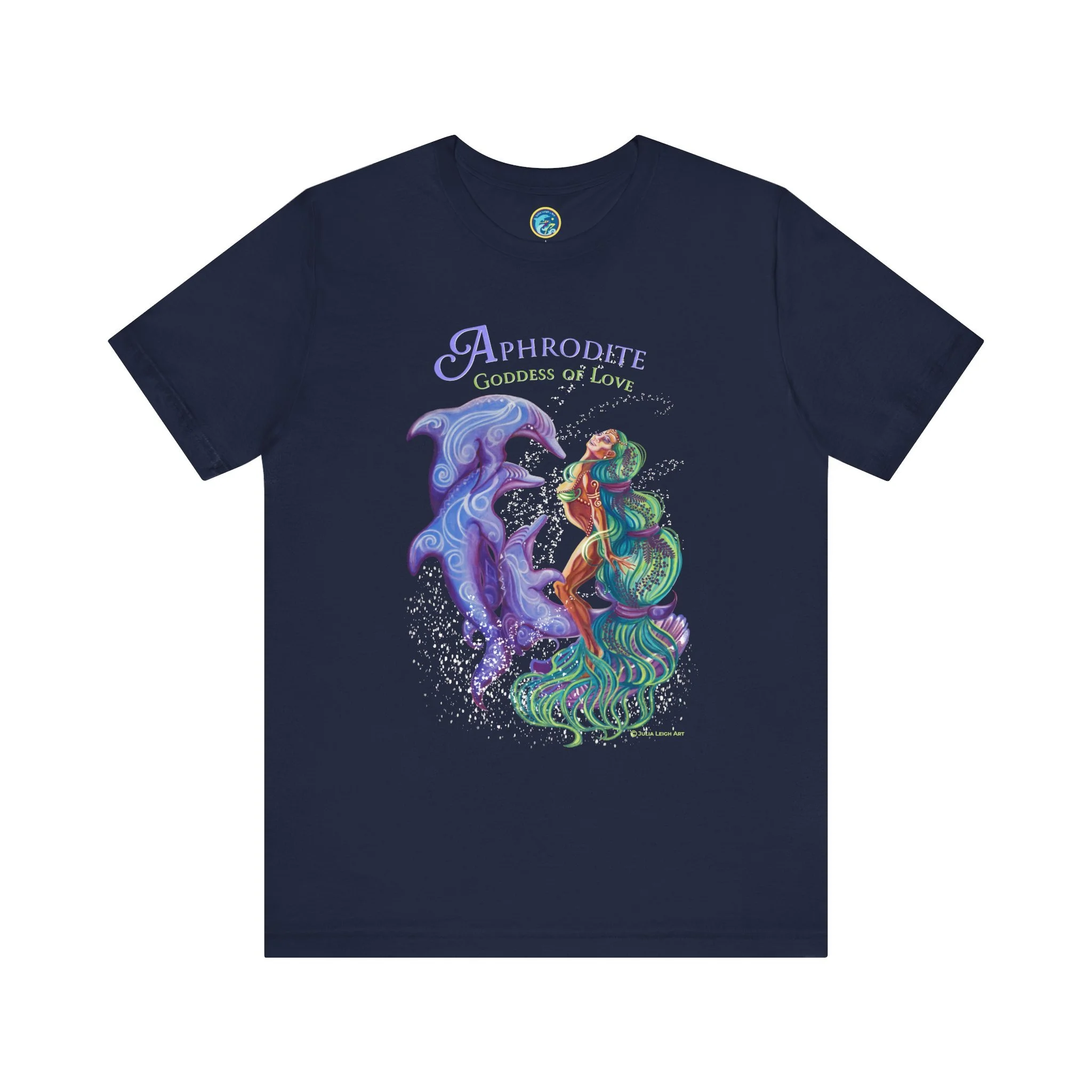 This Goddess Aphrodite Unisex Jersey Short Sleeve Tee features the Ancient Greek Goddess of Love, Beauty, Pleasure & Passion - Aphrodite is one of the 12 Olympian Deities revered for millenia as the embodiment of Sensuality & Female Empowerment....Aphrodite & her Dolphins are a symbol of the Creative Forces of Life!