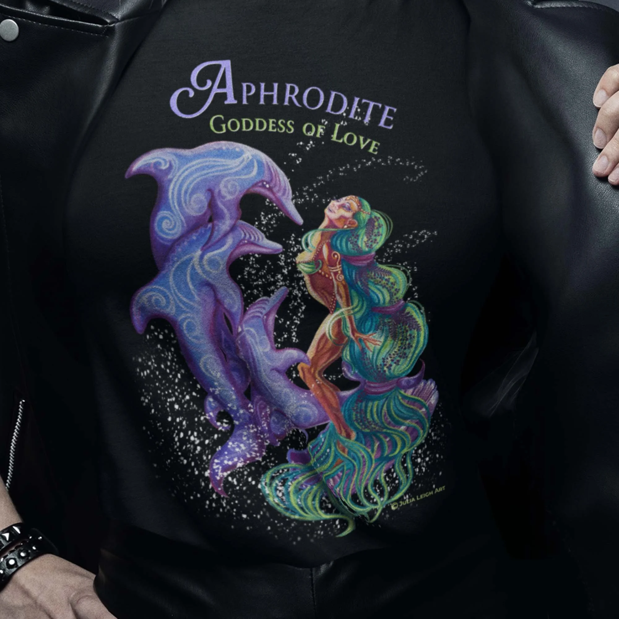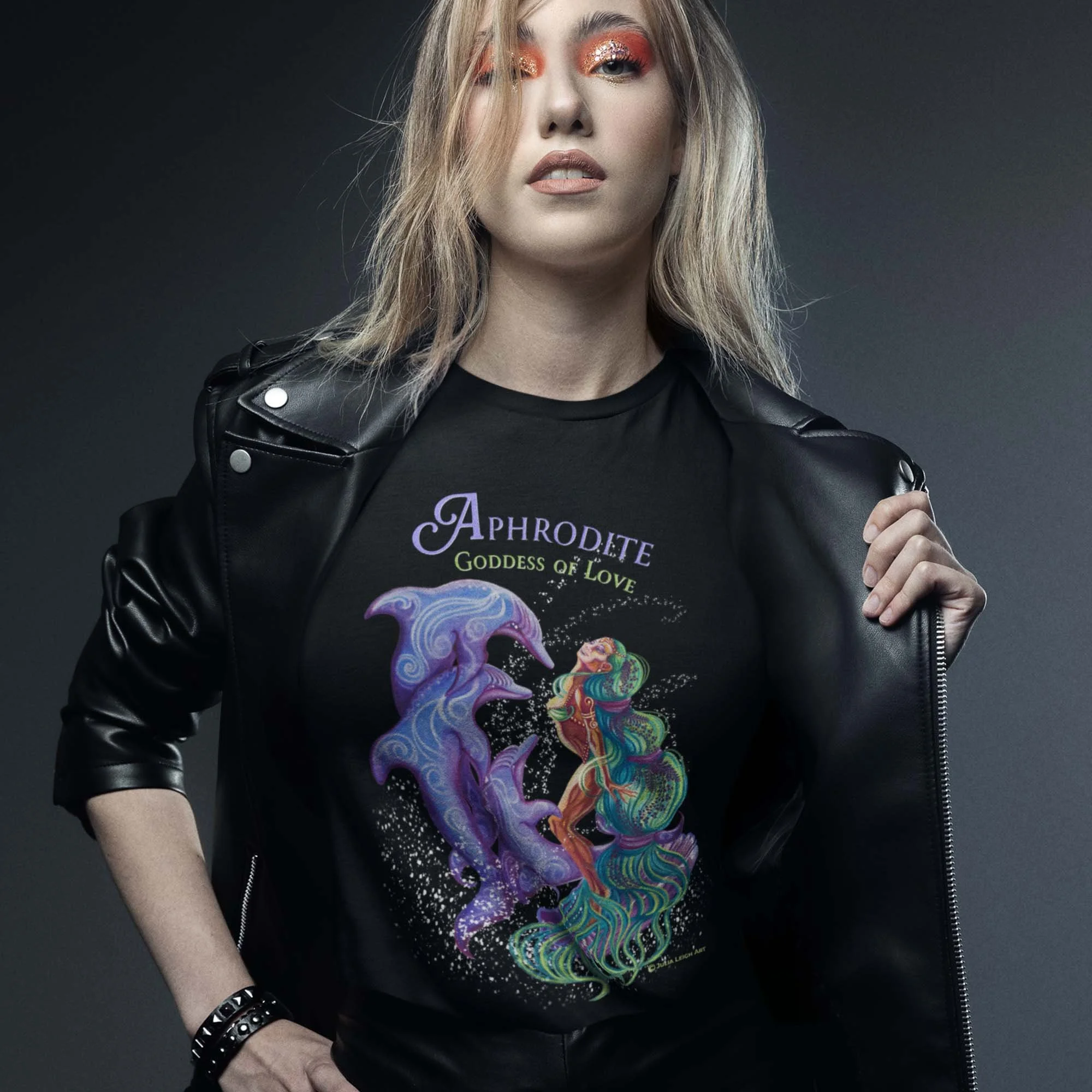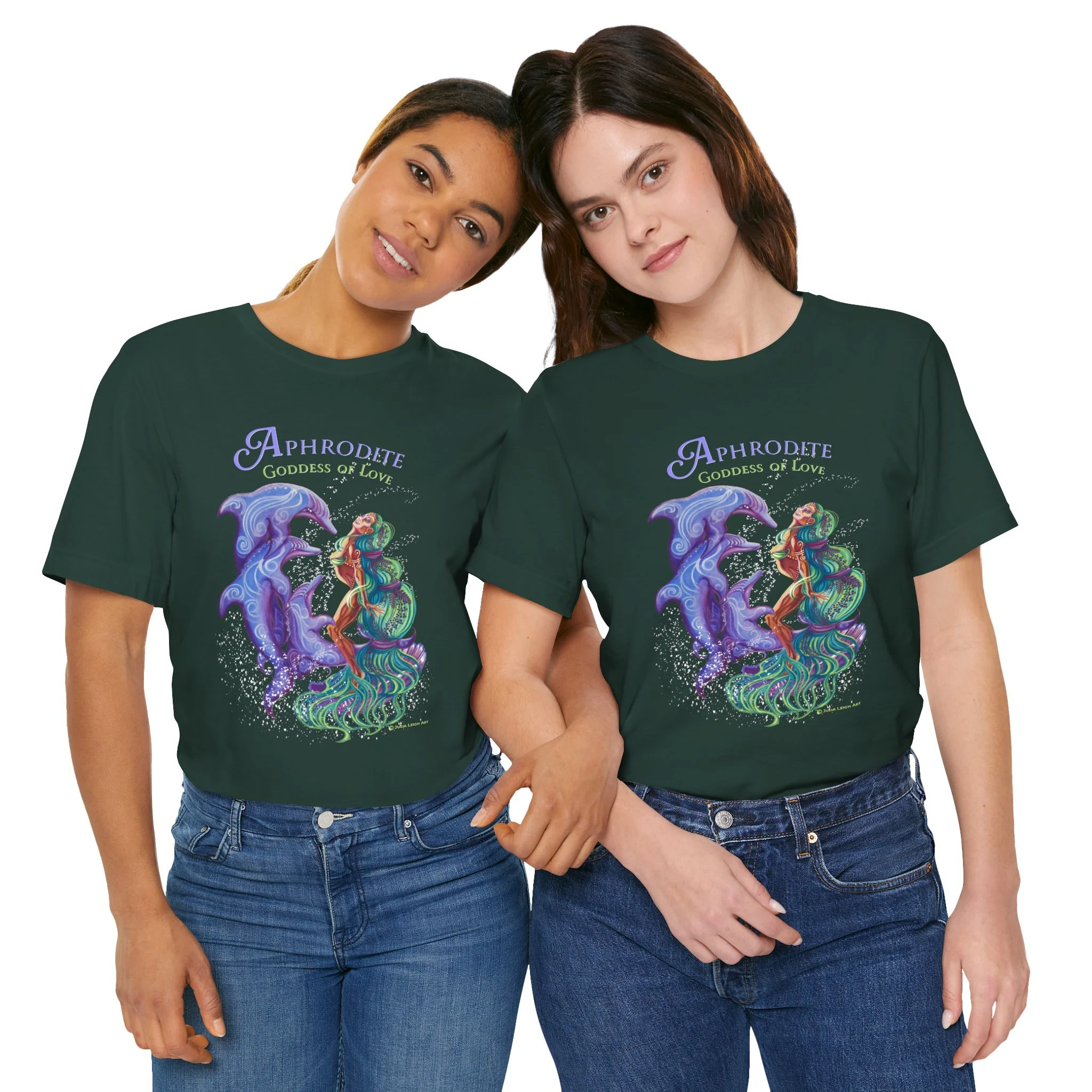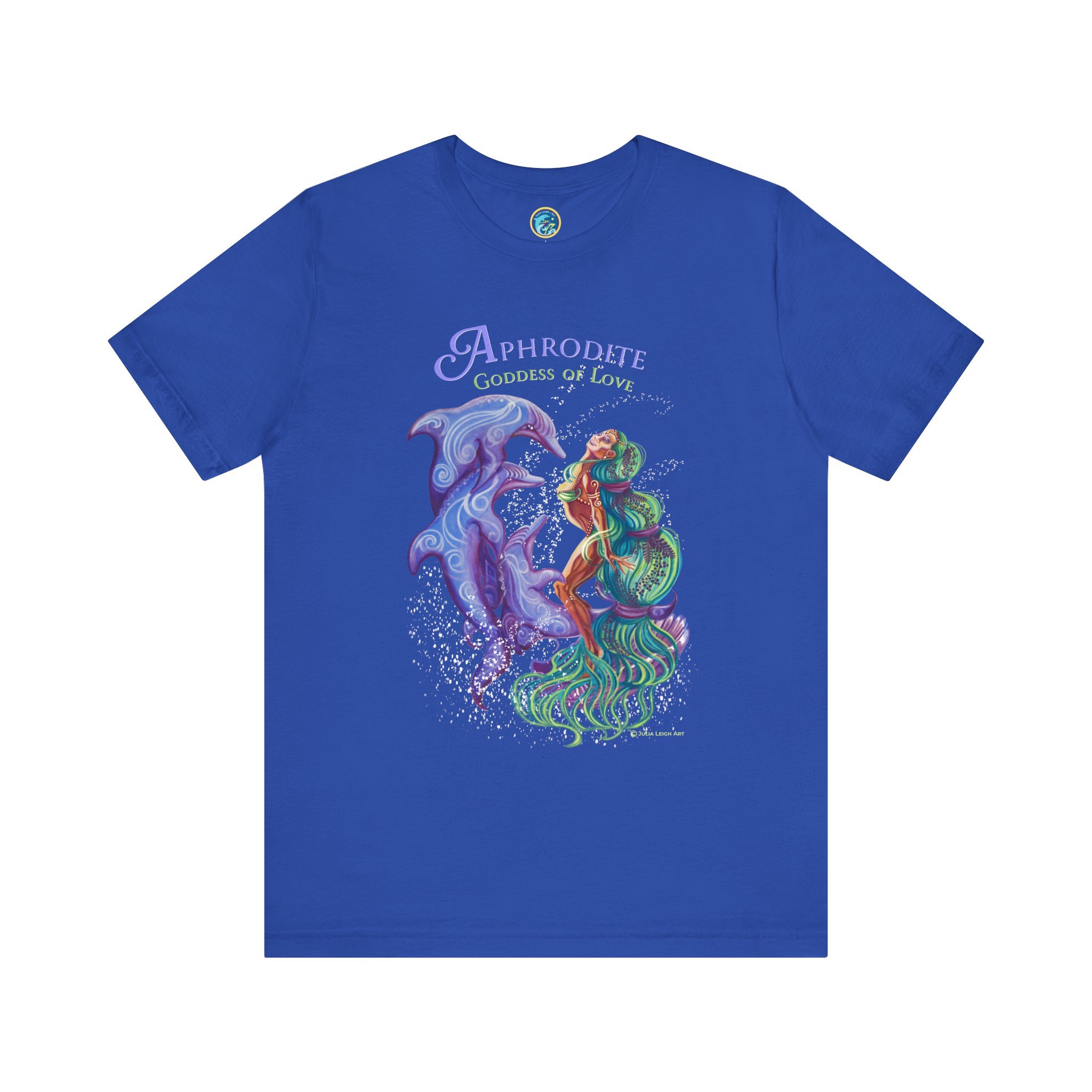 This Goddess Aphrodite Unisex Jersey Short Sleeve Tee features the Ancient Greek Goddess of Love, Beauty, Pleasure & Passion - Aphrodite is one of the 12 Olympian Deities revered for millenia as the embodiment of Sensuality & Female Empowerment....Aphrodite & her Dolphins are a symbol of the Creative Forces of Life!